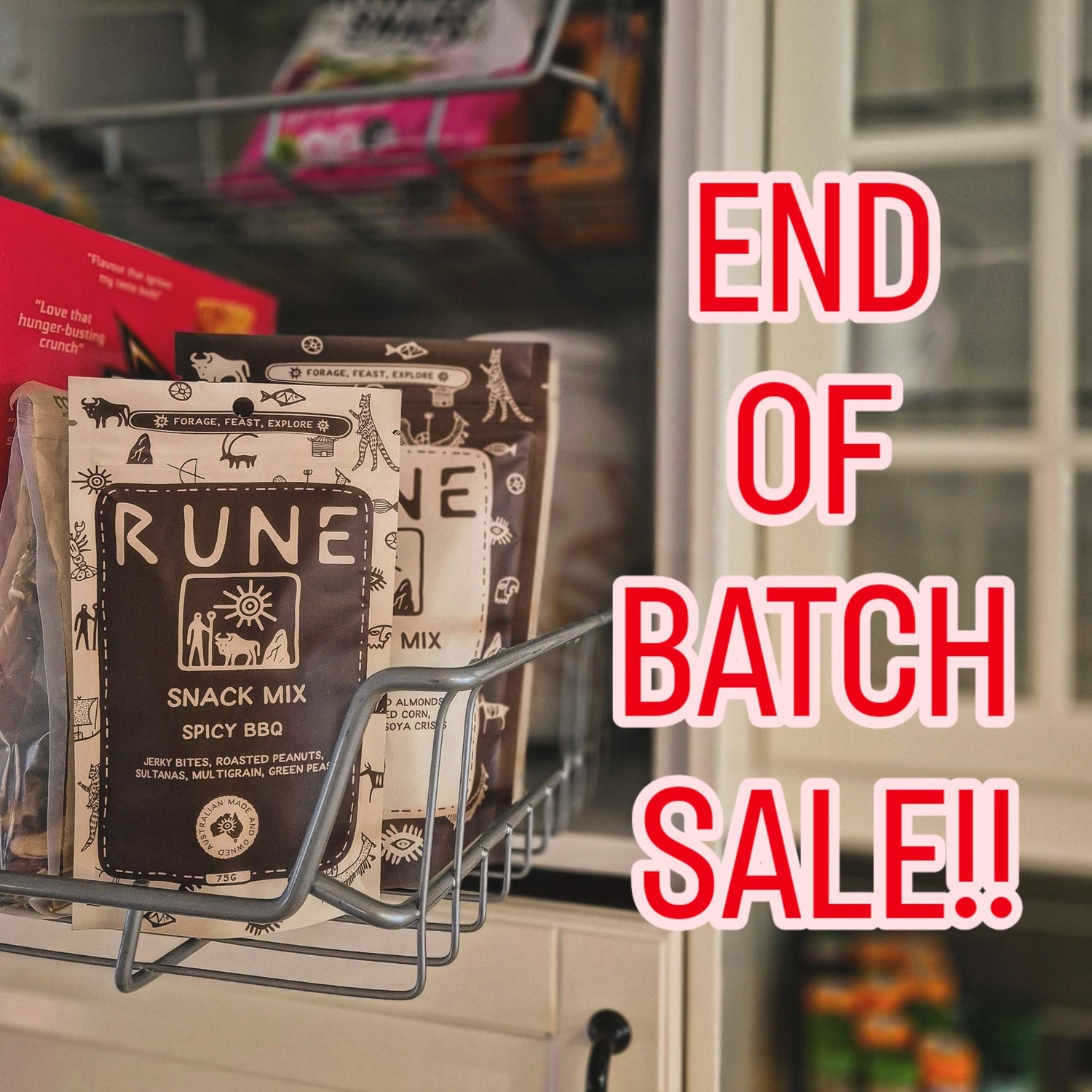 We have a new size (120g) coming mid-May and need to clear out the previous batch as it nears the end of shelf life.